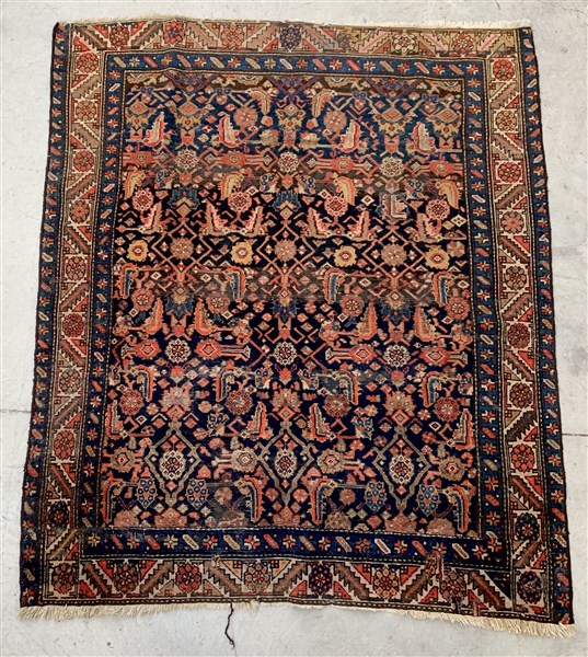 Decoro con motivo Herati su fondo blu notte. (cm 150x126) (difetti, rapature e vecchi restauri)