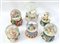 Gruppo di sei boule de neige natalizie con carillon. Vetro e resina policroma (