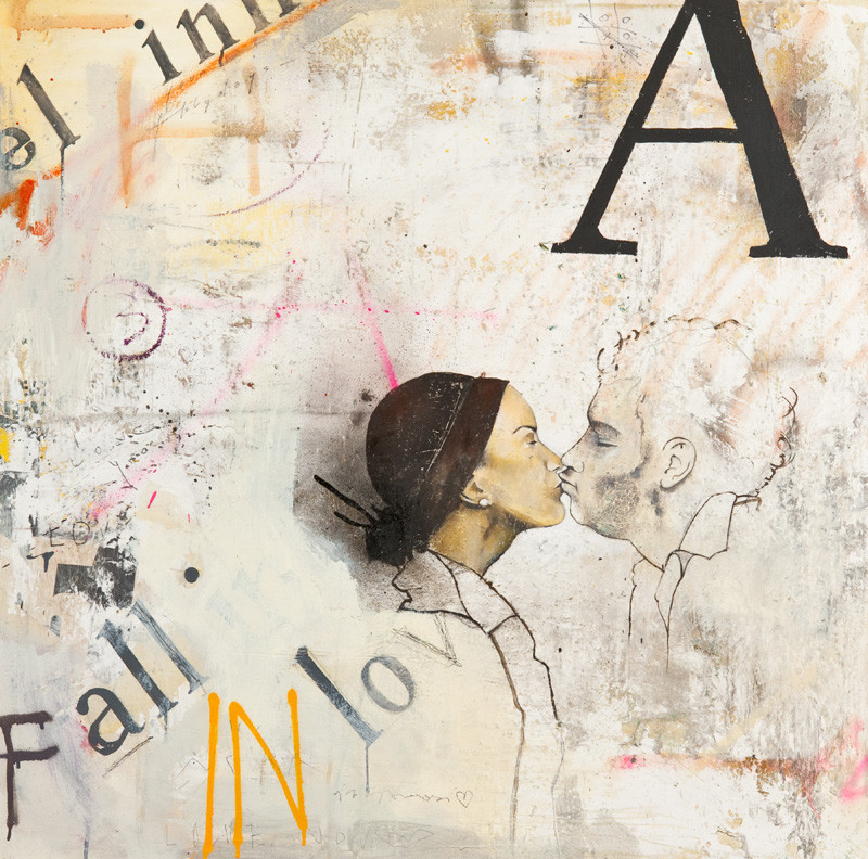 Francesco Pogliaghi Il bacio, 2009 Tecnica mista su tela, cm. 100x100 Sul...