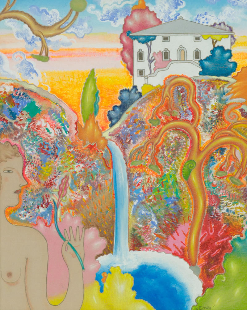 Luca Alinari Paesaggio con figura Tecnica mista su tela applicata su tavola, cm. 49x39 Firmato in basso a destra.
