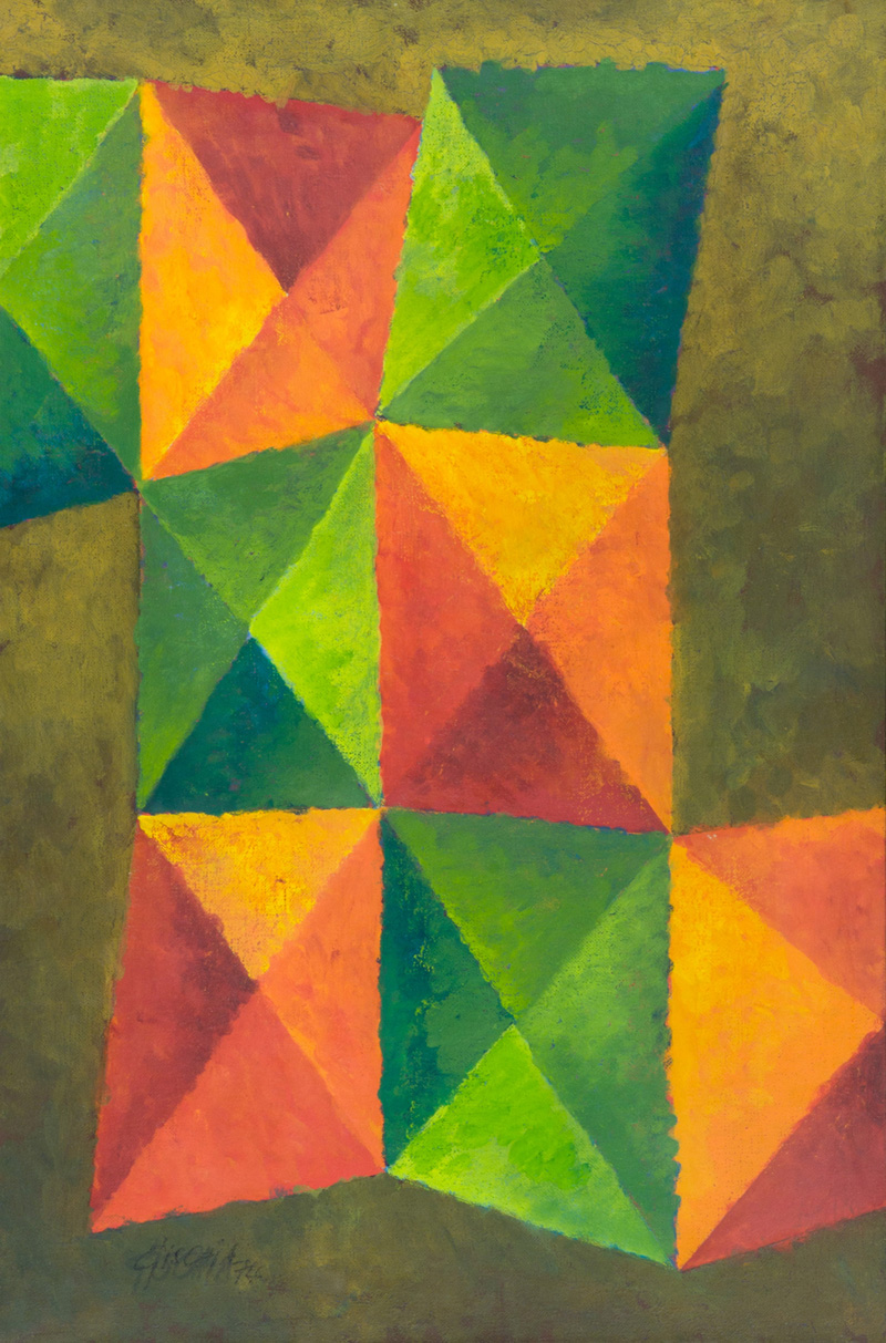 Leon Gischia Composizione fondo bruno, 1974 Olio su tela, cm. 81,5x54 Firma e data in basso a sinistra. Sul verso: firma, data e titolo.