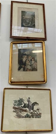 Lotto di quattro stampe a colori di soggetto ed epoche differenti, in cornici (