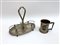Lotto composto da un porta-ampolle ed un piccolo boccale cesellato con stemma n