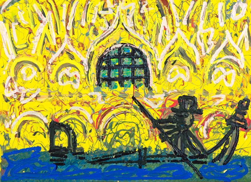 Giampaolo Berto Gondoliere a San Marco Acrilico su tavola, cm. 50x70 Sul verso: etichetta "Dadadopo", con descrizione. Bibliografia: Roberta Reali, "Berto Opere recenti - 1", Ediz. Minelliana, Tav. 525.