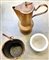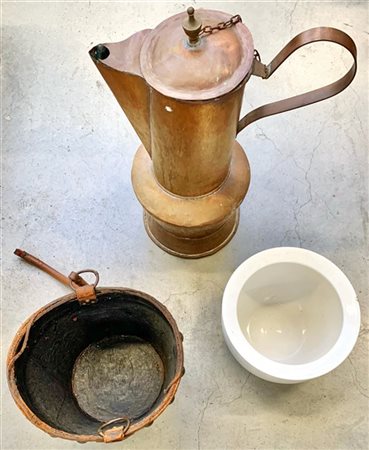 Lotto composto da un porta carbone inglese in cuoio, una grande brocca in rame ed un vaso in ceramica della manifattura D'Este (difetti)