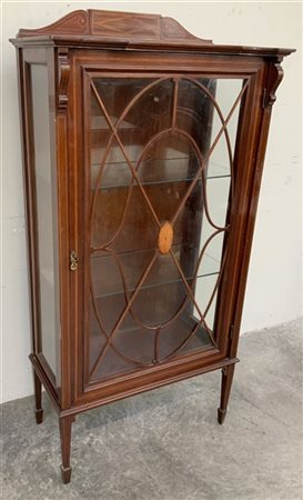 Vetrinetta in mogano filettato, gambe rastremate, Inghilterra secolo XX (cm 74x