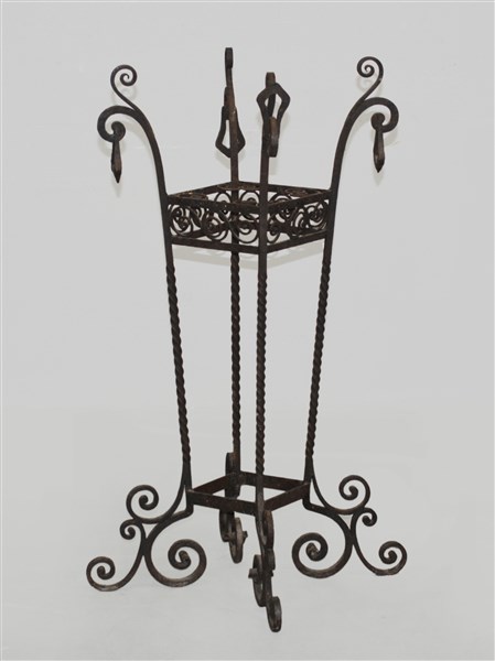 Base in ferro battuto decorato a volute (h cm 94,5) (difetti)
