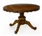 Tavolo con piano tondo allungabile, fascia sagomata, gamba centrale tornita ter