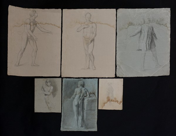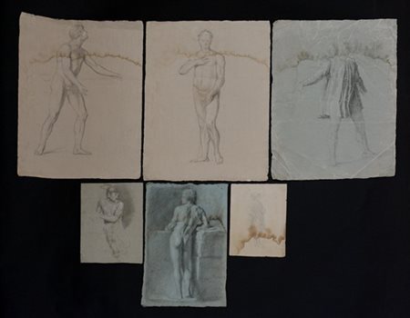 Scuola della fine del secolo XIX - inizio XX "Studi accademici" sei disegni a matita su carta (circa cm 59x35 i tre più grandi; cm 45x30; cm 29x22; cm 27x20)