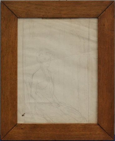 Ignoto "Figura in un interno" matita su carta (cm 24x18) in cornice