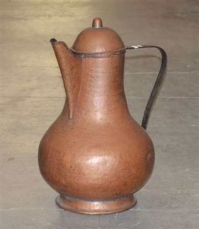 Grande cuccuma in rame martellato con ansa in ferro. (h cm 54)
