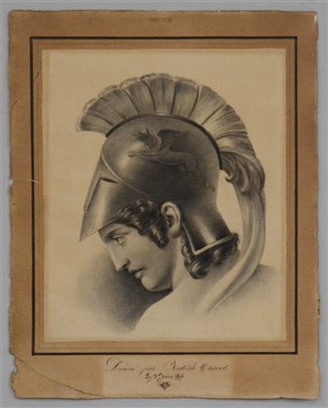 Scuola Francese del secolo XIX ''Achille'' matita su carta (cm 49 x 39) iscritto e datato 1848 in basso (Difetti)