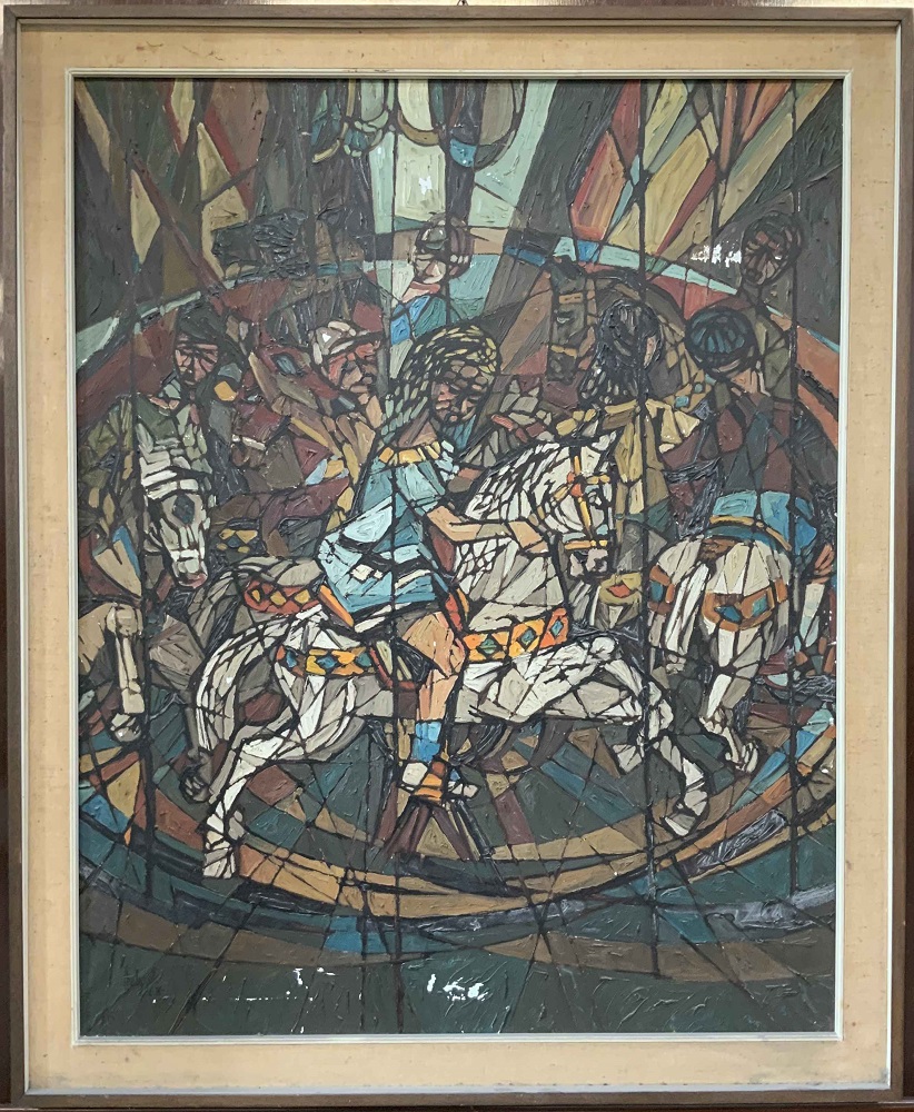 Osvaldo Malvizzati "La giostra" 1963 olio su tela cm 100x80 firmato e datato in
