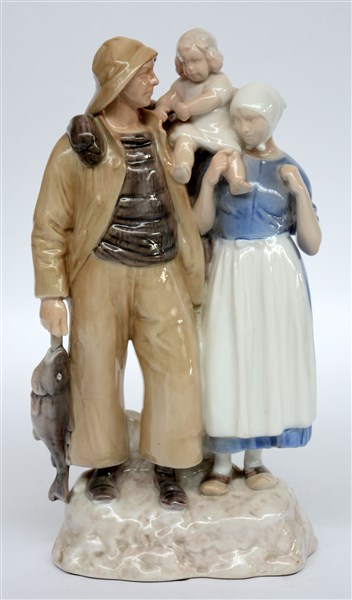 Manifattura di Copenaghen "Gruppo di famiglia" statuetta in porcellana policrom