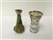 Lotto composto da un vaso boemo in vetro lattimo dipinto e un vasetto in vetro soffiato in stile arcaico (h max cm 15,5) (lievi difetti)