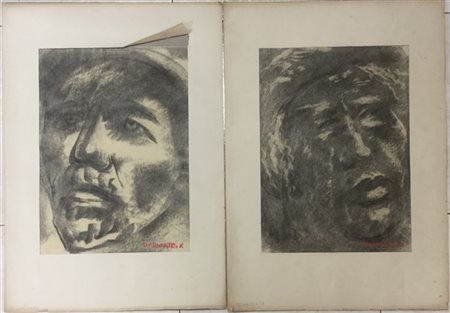 Giandante X "Volti" coppia di disegni a tecnica mista su carta cm 47x35 firmati