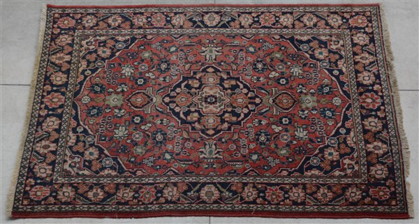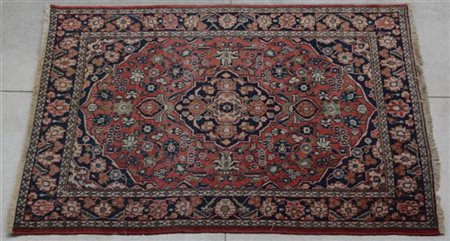 Tappeto Hamadan, Persia, secolo XX. Decoro con medaglione blu su fondo rosa. (c
