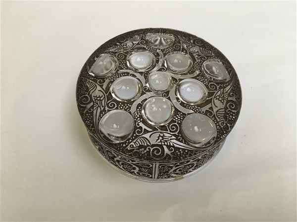 Lalique Scatola con coperchio in vetro inciso raffigurante volatili e grappoli d