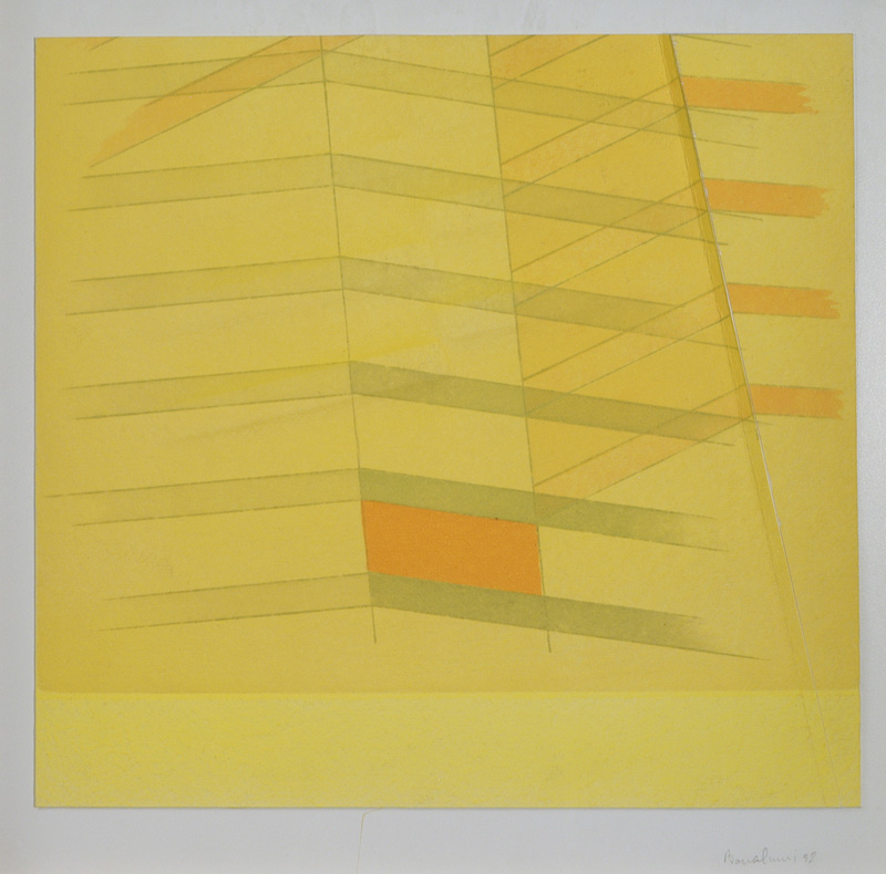Agostino Bonalumi Giallo e rosso, 1982 Estroflessione e acquerello su cartoncino, cm. 45x45 Firma e data in basso a destra. Autentica dell'Archivio Agostino Bonalumi S.r.l., Milano, su foto, con firma dell'Artista e Archivio n° 82 - 002C.