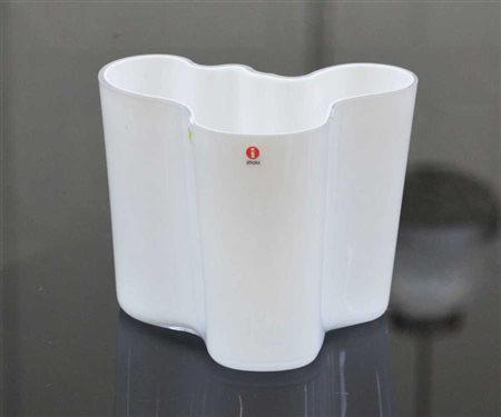 Alvar Aalto Vaso in vetro incamiciato lattimo prodotto in stampo. Produzione Iit