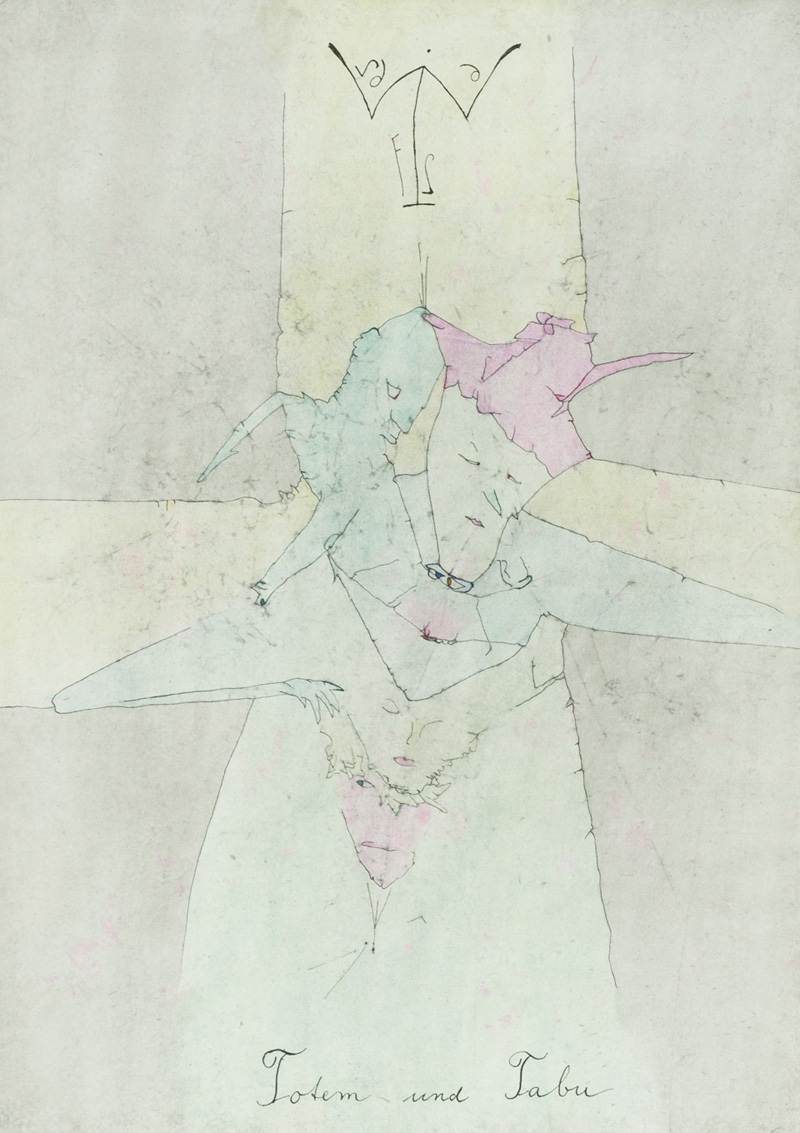 Ladislav Novax Totem und tabu Tecnica mista su carta, cm. 59x42,5 Firma in alto al centro, titolo in basso al centro.