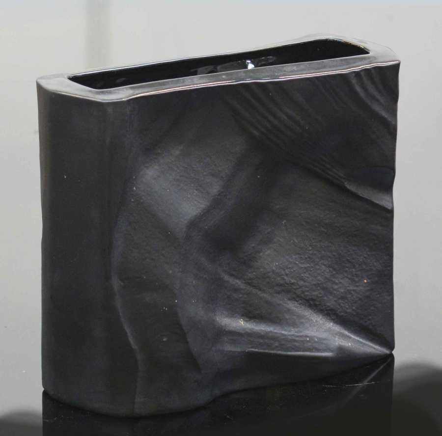 Vaso della serie "Studio Linie". Manifattura Rosenthal, Germania. Porcellana smaltata nera con superficie a cartoccio. Marcato sotto la base e recante firma dell'artista. (cm 25,5x21x10)