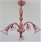 Lampada a sospensione a quattro luci e quattro foglie in vetro soffiato trasparente ametista. Anni '30/'40. (h cm 70; d cm 80) (gravi difetti)