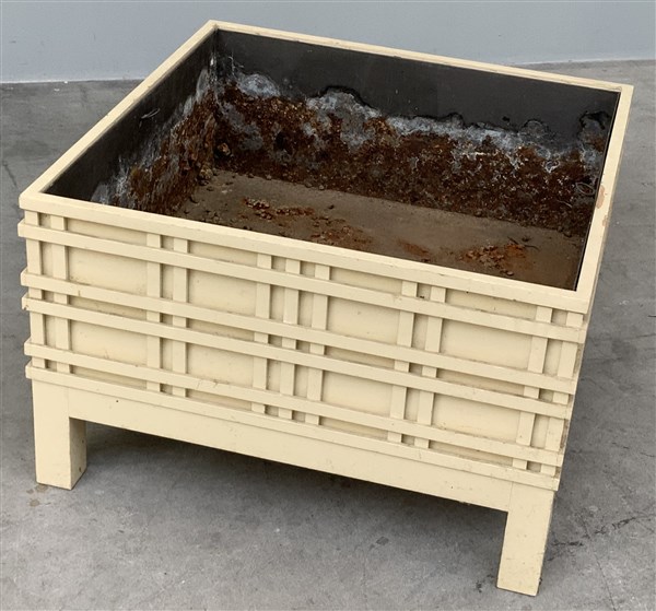 Fioriera. Produzione Molli, Roma, anni '70/'80. Legno laccato beige. (cm 80x51x80) (difetti)