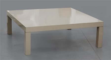 Tavolo da salotto. Produzione Molli, Roma, anni '70/'80. Legno laccato beige. (cm 120x40x120) (difetti)