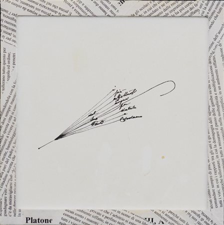Piastrella in ceramica con decoro tratto da una lettera augurale di Gio Ponti. Italia, anni '80/'90. In cornice. (cm 22,5x22,5) (lievi difetti)