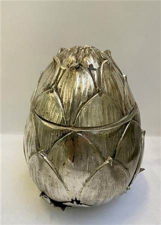 Portaghiaccio in metallo argentato a forma di carciofo. 1970ca. Marcato sotto la base "MM Firenze, Made in Italy". (h cm 21; d cm 16) (difetti e mancanze)