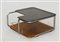 Tavolino-bar con struttura in metallo cromato, piano inferiore in legno con por