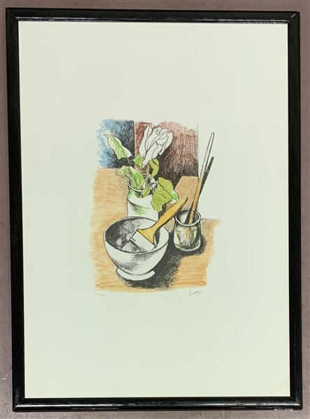 Lotto composto da tre litografie: una di Renato Guttuso "Natura morta", una di Renato Guttuso "Onda", una di Michele Cascella "Campo di fiori".