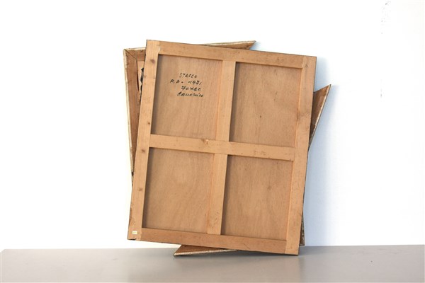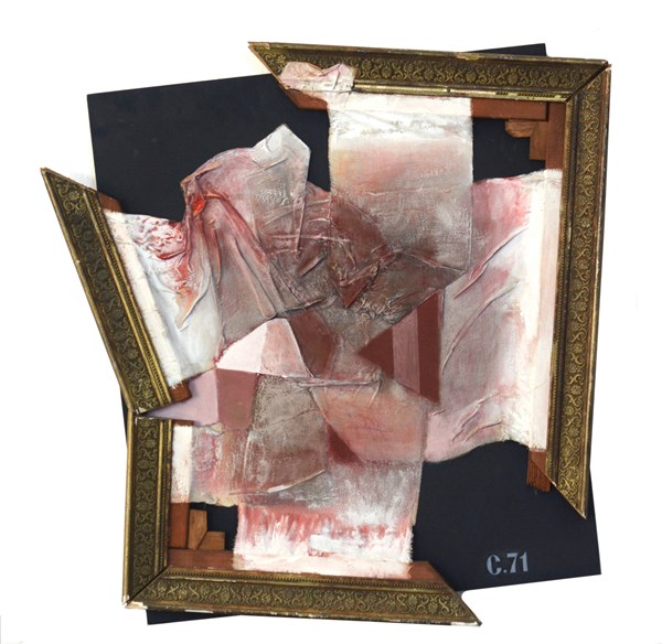 Felice Canonico "Stacco P.D." 1971 olio e assemblage su tavola cm 70x60 titolato