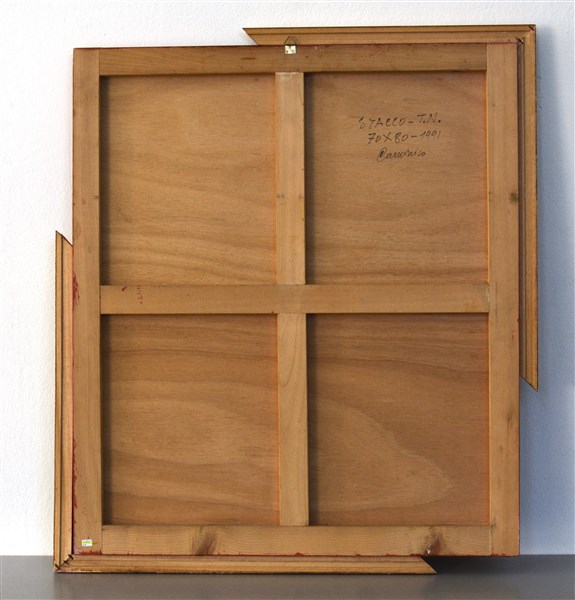 Felice Canonico "Stacco T.N." 1991 olio, collage e assemblage su tavola cm 80x70