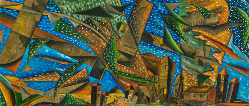 Agibeci Futurista Spazio aereo Tecnica mista su cartone, cm. 20x45 Firmato in basso a destra. Sul verso: firma e titolo; Etichetta dell'Artista con descrizione.