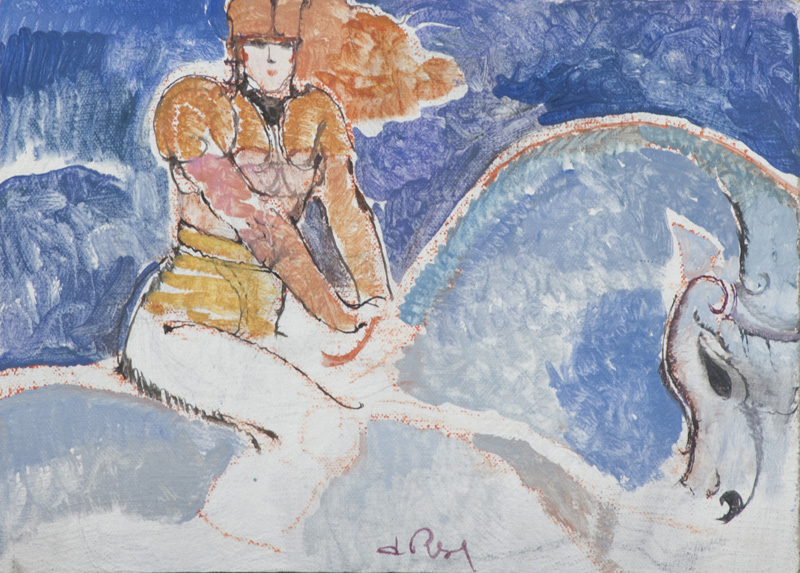 Raffaele De Rosa Cavallo e cavaliere Tecnica mista su tela applicata su tavola, cm. 21x29 Firmato in basso al centro.