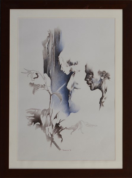 Luigi Timoncini "Anniversario coi fiori" 1978 pastelli su carta cm 61x41,5 firma