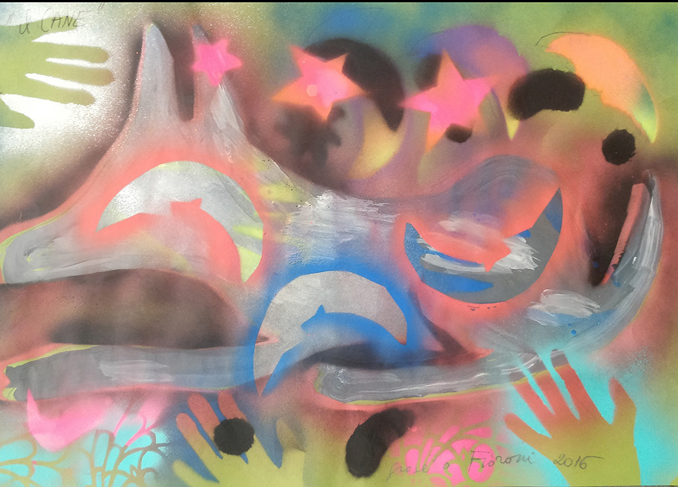 Giosetta Fioroni Tecnica mista su carta 50x70 Il cane 2016 Autentica dell'artista su foto