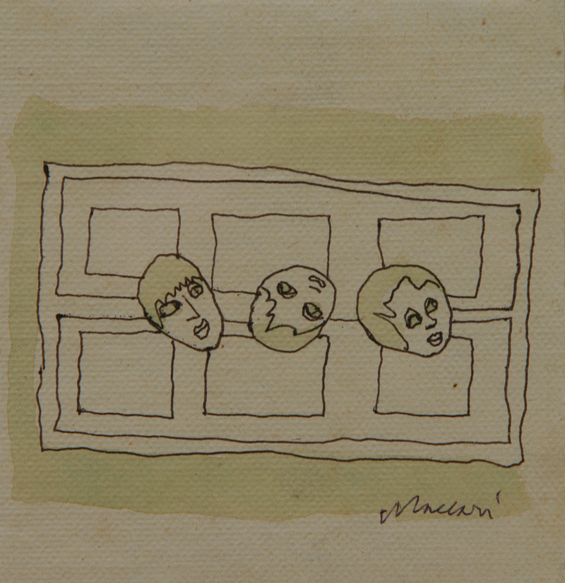 Mino Maccari Volti Tecnica mista su carta riportata su tela, cm. 11x10,5 Firmato in basso a destra. Autentica dell'Archivo Mino Mccari di R. J. Charlton su foto, con timbro a secco e n° 4481.