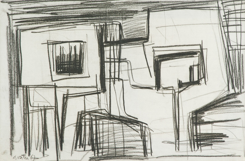Gualtiero Nativi Studio, 1967 Carboncino su carta intelata, cm. 30,5x46 Firma e data in basso a sinistra. Autentica dell'Archivio Gualtiero Nativi su foto con timbro a secco, firma "Berto Nativi" e Archivio n° D677.