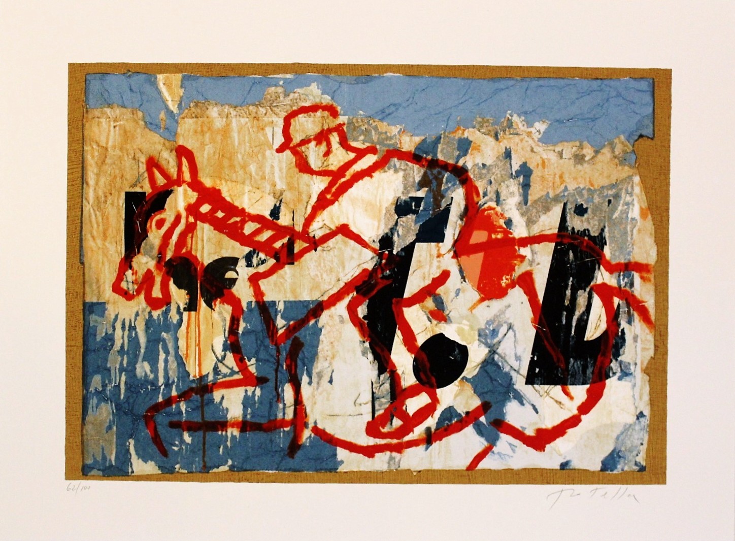 ROTELLA MIMMO Catanzaro 1918 – Milano 2006 "Primo futurismo" multiplo, serigrafia a colori dècollage cm 60x80. Firma in basso a destra e tiratura 62/100 in basso a sinistra. Certificato Spirale arte.
