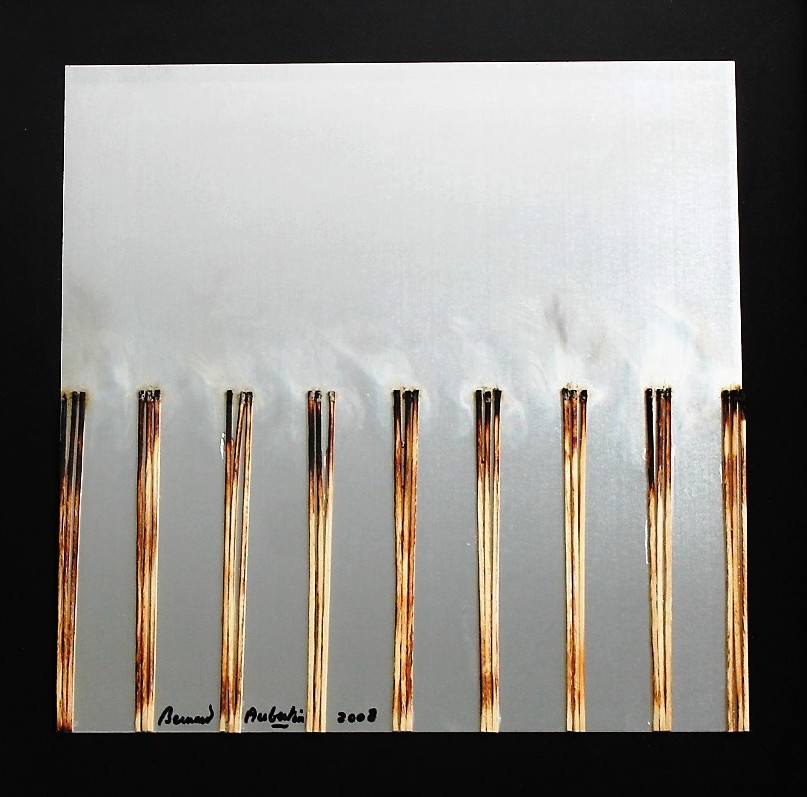 AUBERTIN BERNARD Francia1934 - Germania 2015 "dessin de feu sur aluminium" fiammiferi su lamiera cm 40x40 anno 2008. Firmato e datato in basso al centro. Certificato d’archiviazione su fotografia a cura dell’archivio.