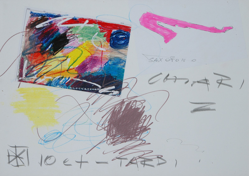 Giuseppe Chiari Io e + - tardi Tecnica mista su carta, cm. 50x70 Firma al centro, titolo in basso al centro. Autentica dell'Artista su foto.