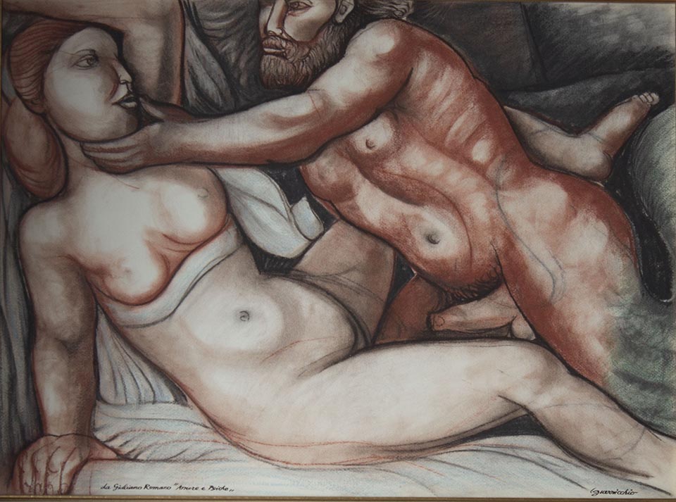 Luigi Guerricchio Tempera su carta 50x75 Amore e psiche