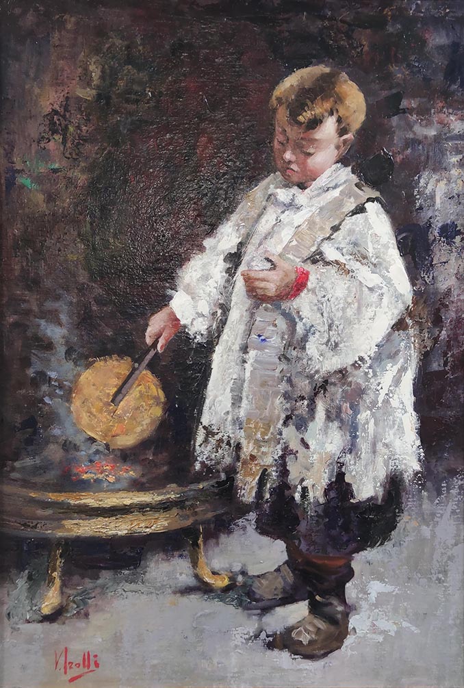 Vincenzo Irolli Olio su cartone telato 63x43 Il chierichetto