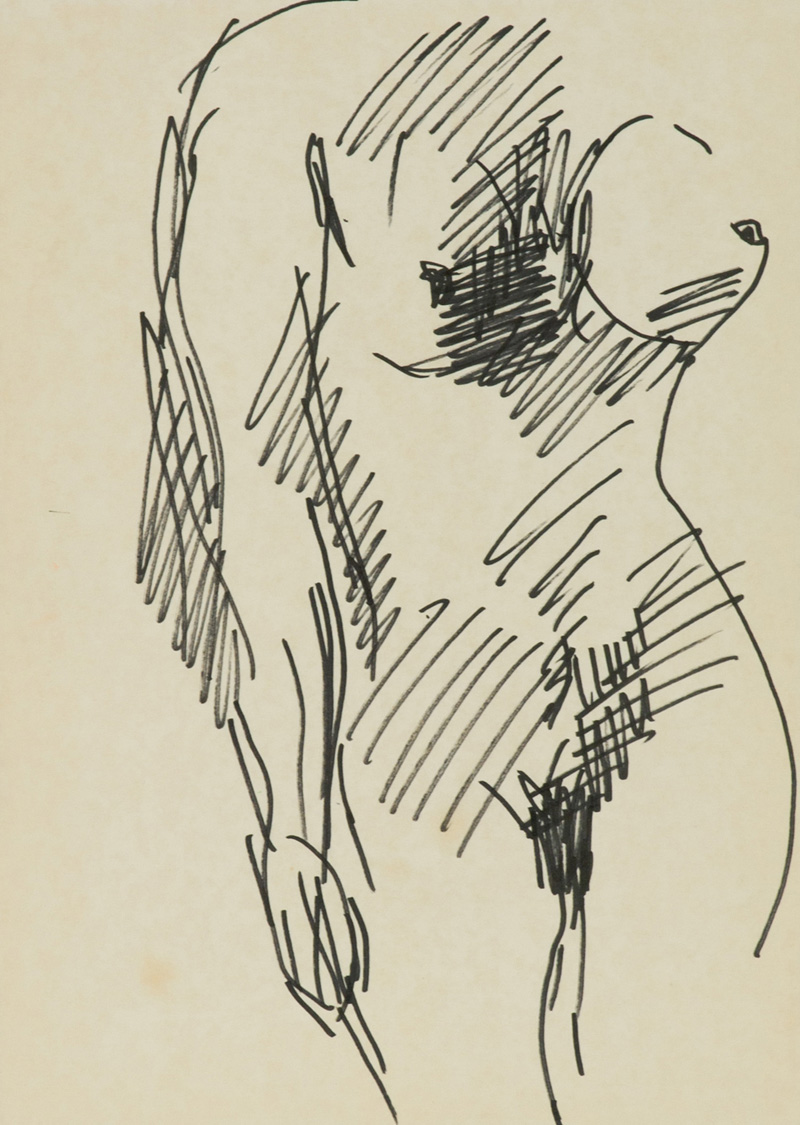 Primo Conti Nudo Pennarelli su carta applicata su tavola, cm. 47x34 La carta presenta lievi ingiallimenti dovuti al tempo. Autentica della figlia Maria Novella Conti su foto.