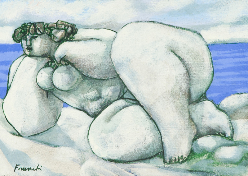Franco Mauro Franchi Figura raccolta Sabbia, pigmenti e acrilici su tela, cm. 25x35,5 Firmato in basso a sinistra. Autentica dell'Artista su foto.