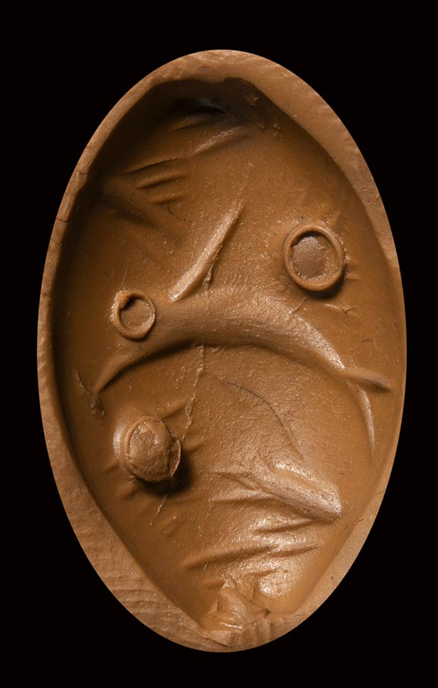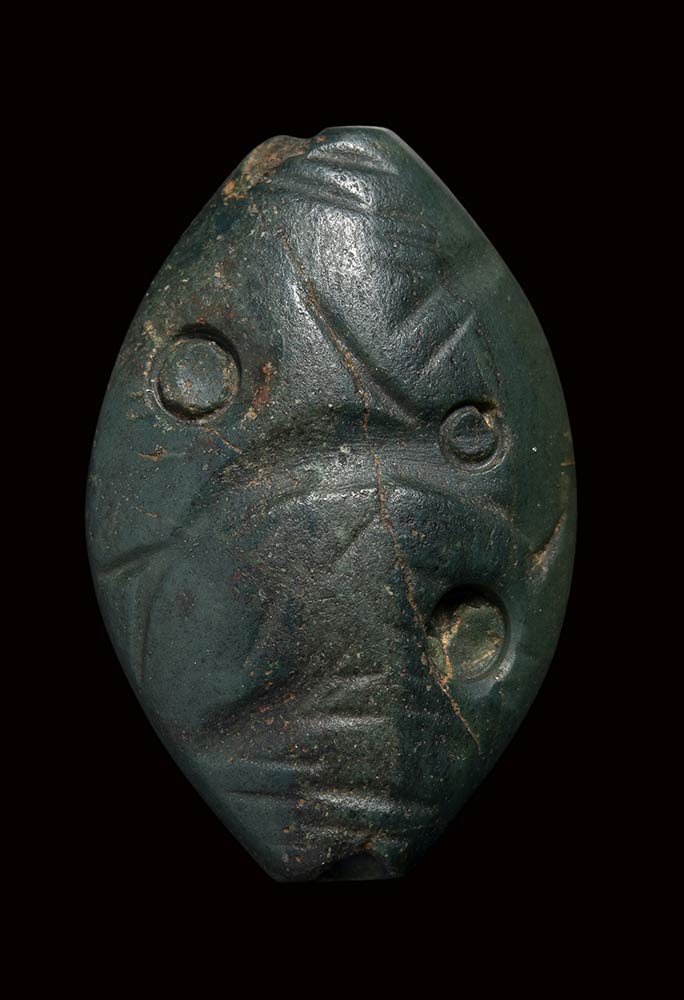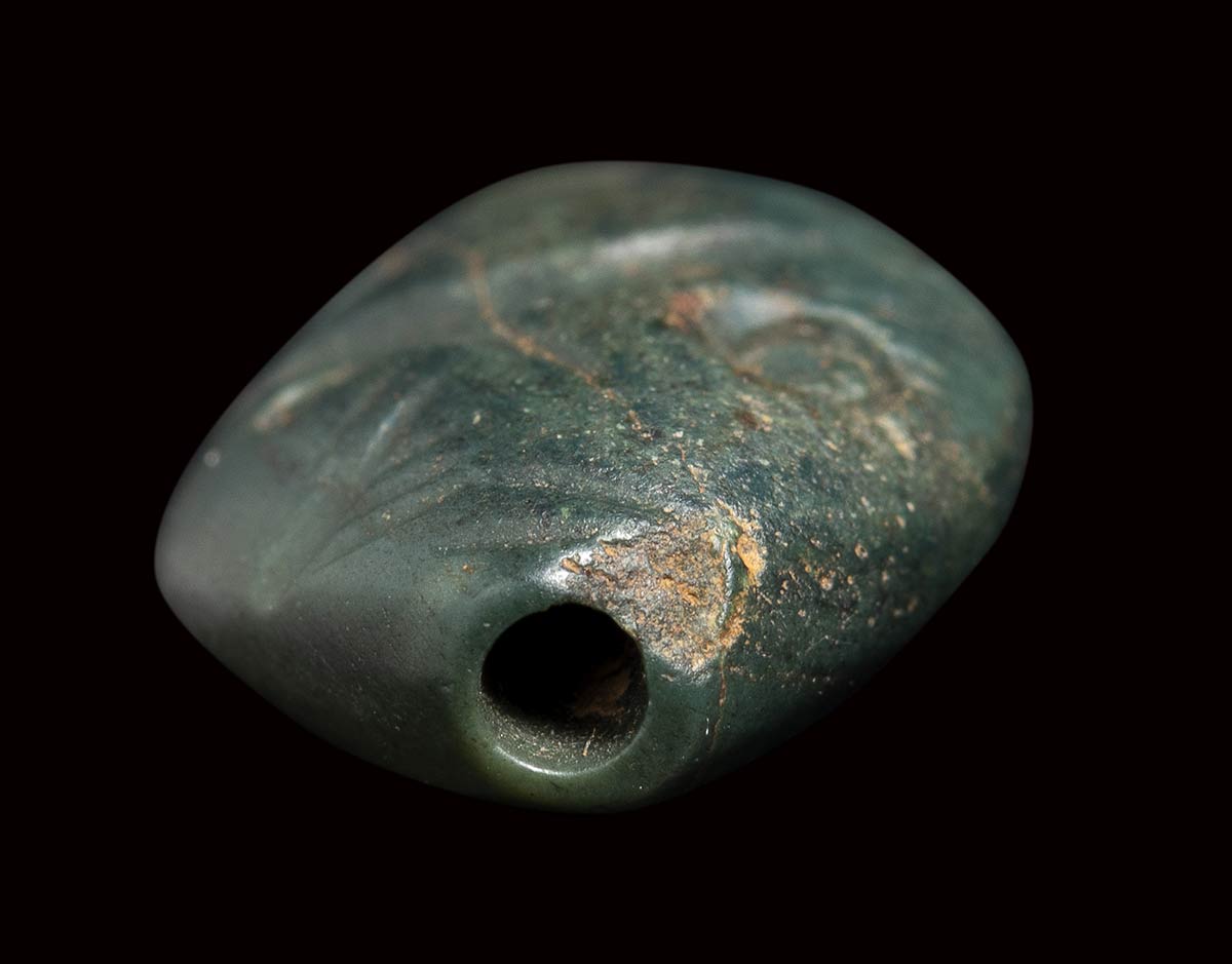 Lot 1 | A minoan amygdaloid green jasper engraved seal.Fish with talismanic symbols .