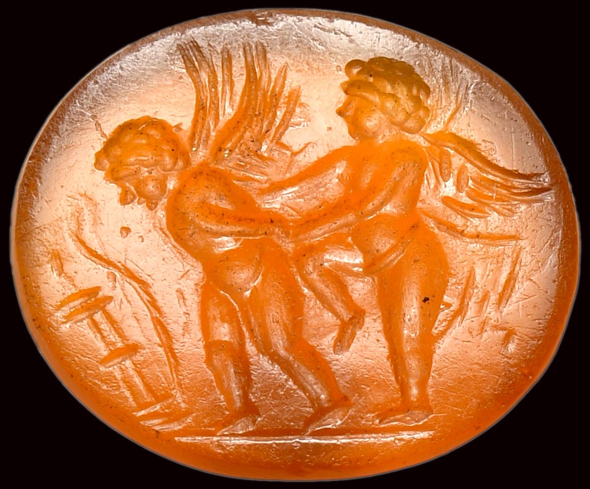 A roman carnelian intaglio. Eros and Anteros.